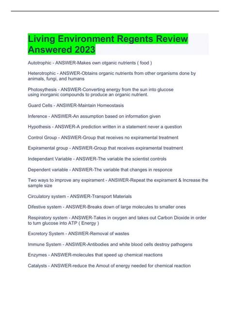 Read Online Living Environment Regents Review Answers Doc